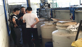 • 某五金加工廠(chǎng)清洗廢水破乳劑調(diào)試現(xiàn)場(chǎng)